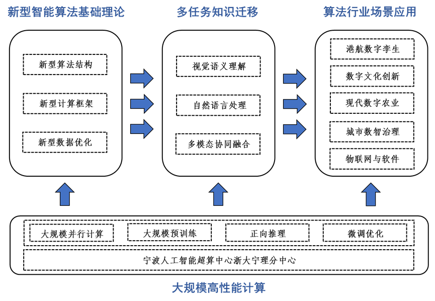本实验室将面向宁波市港口航运特色场景的重大需求,在新型智能算法基础理论、多任务知识迁移、大规模高性能计算、算法行业场景应用等四个方向深入开展研究工作。