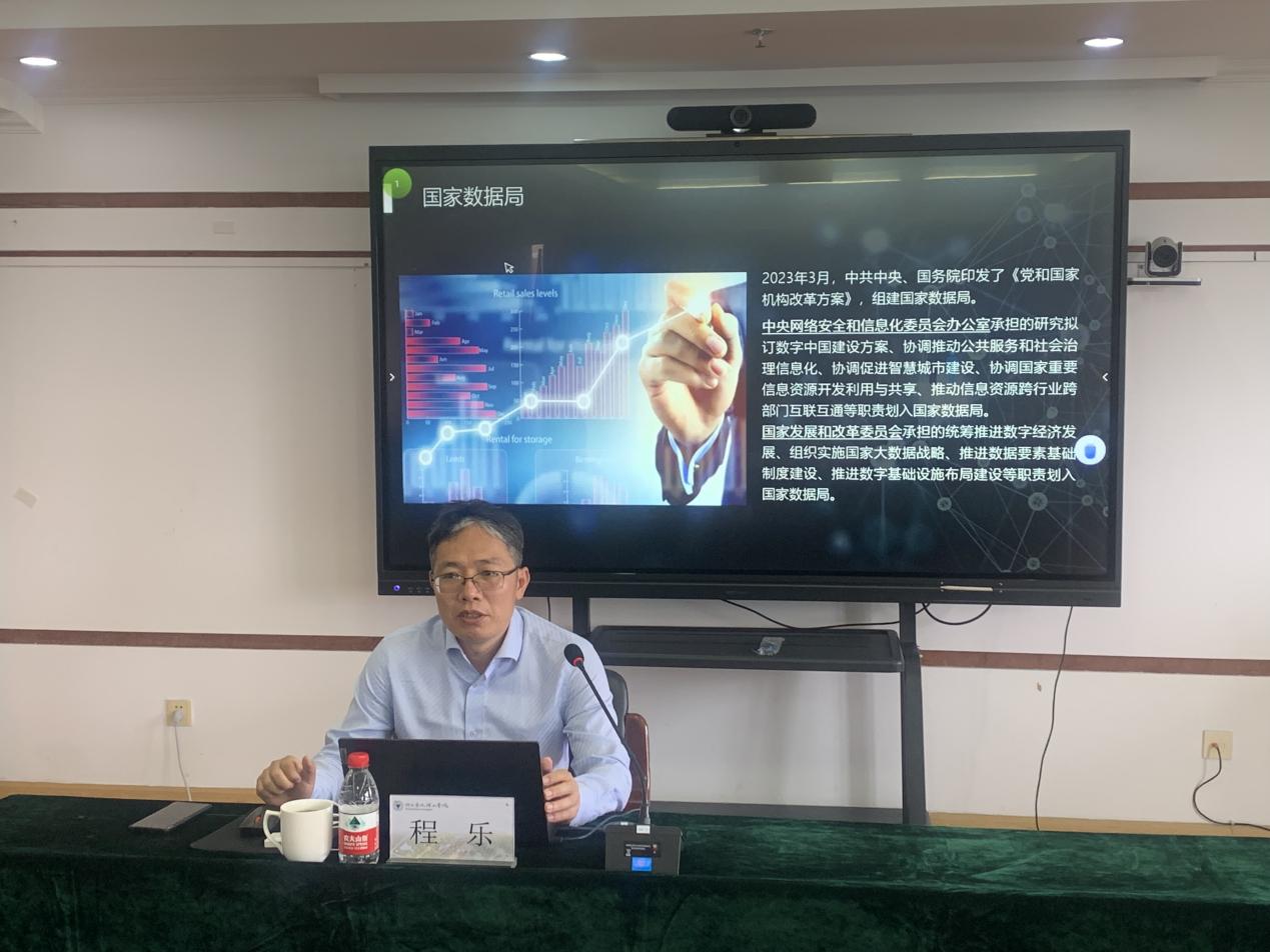 程乐是浙江大学求是特聘教授(科研岗),光华法学院光华特聘教授、网络空间安全学院兼聘教授,国际战略与法律研究院常务副院长,网络空间国际治理研究基地执行主任、首席科学家,国家制度研究院特聘研究员,是数字科学及相关领域的专家。报告会上,程乐教授围绕主题,从数字中国与数字学科建设、数字经济发展与数据要素、数据科学:国际视野、数据科学:未来规划等方面展开,就数字经济背景下产业安全、数据要素、数据基础制度、数据合规流通、数据产权、交易与收益分配、安全治理制度与保护措施等内容作了深入解读和阐述,提出数据科学的未来规划可以在完善数字技术战略顶层设计、数据跨境流动法律规制、加强数字科技国际合作、搭建数据动态监测平台等方面进行探索,积极推动数据科学研究院、数据科学实验室、数据科学学科群、数据科学国际化构建。